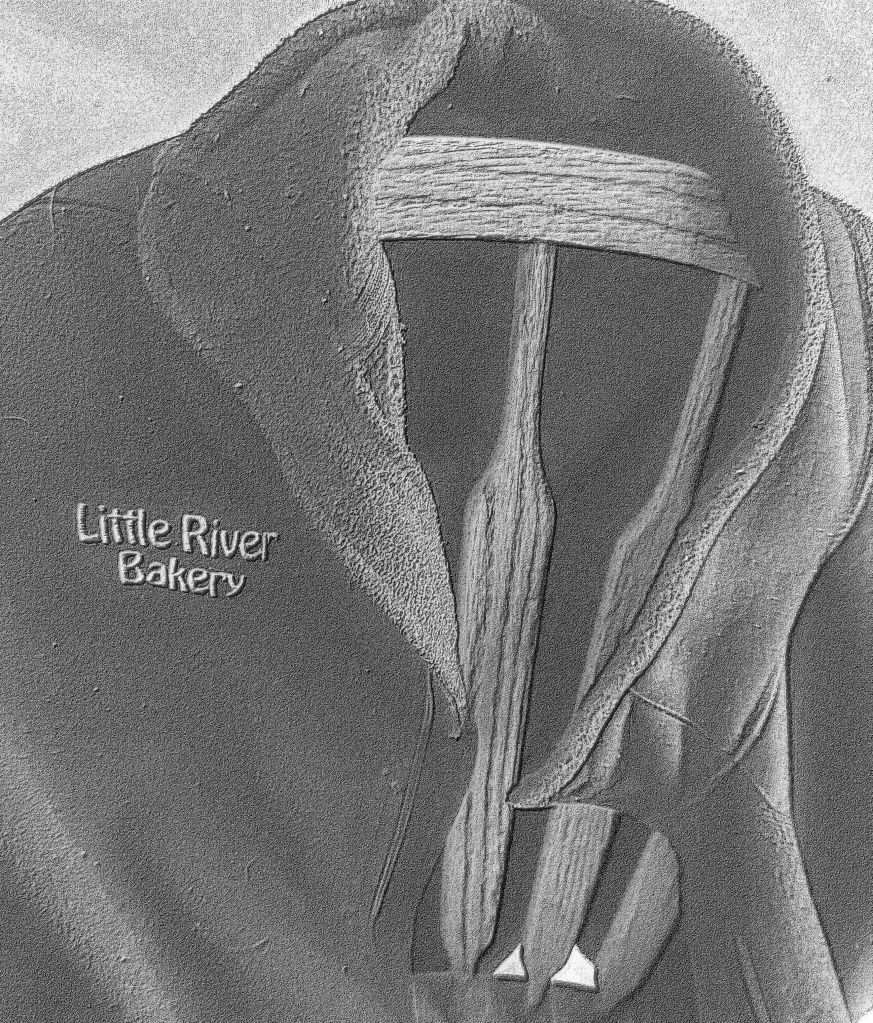 On our first family Christmas at Little River I could tell that Sarah was very excited about the gifts she had prepared for us. With eyes sparkling and a smile on her face she handed them April, Melody and urged us to open them first. We were soon delighted to try on lovely jackets with Little River Bakery embroidered on them They have served us well since both as coats and reminders of our Bakery days .